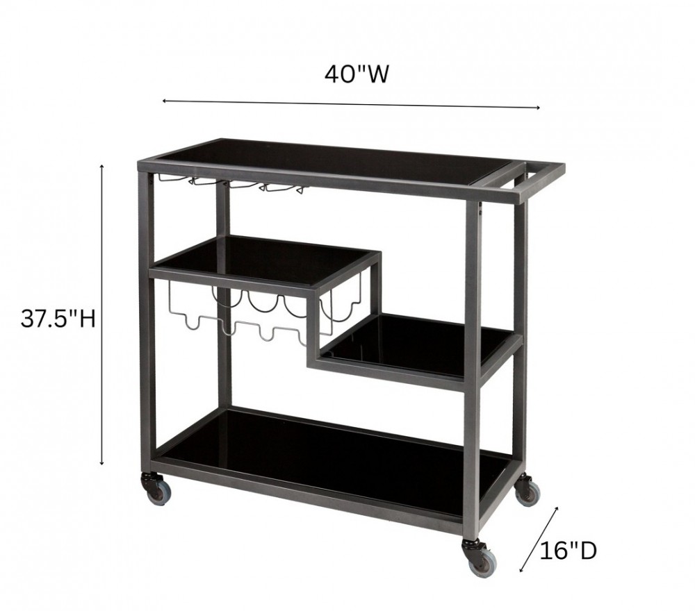 Gray metal and black glass bar cart