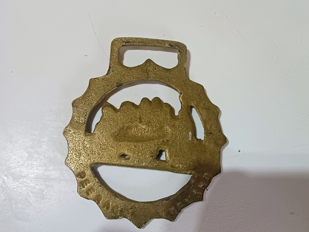 English Horse Brass Train Locomotive Bridle Harness Decoration. Measures approx. 3" x 2 5/8".